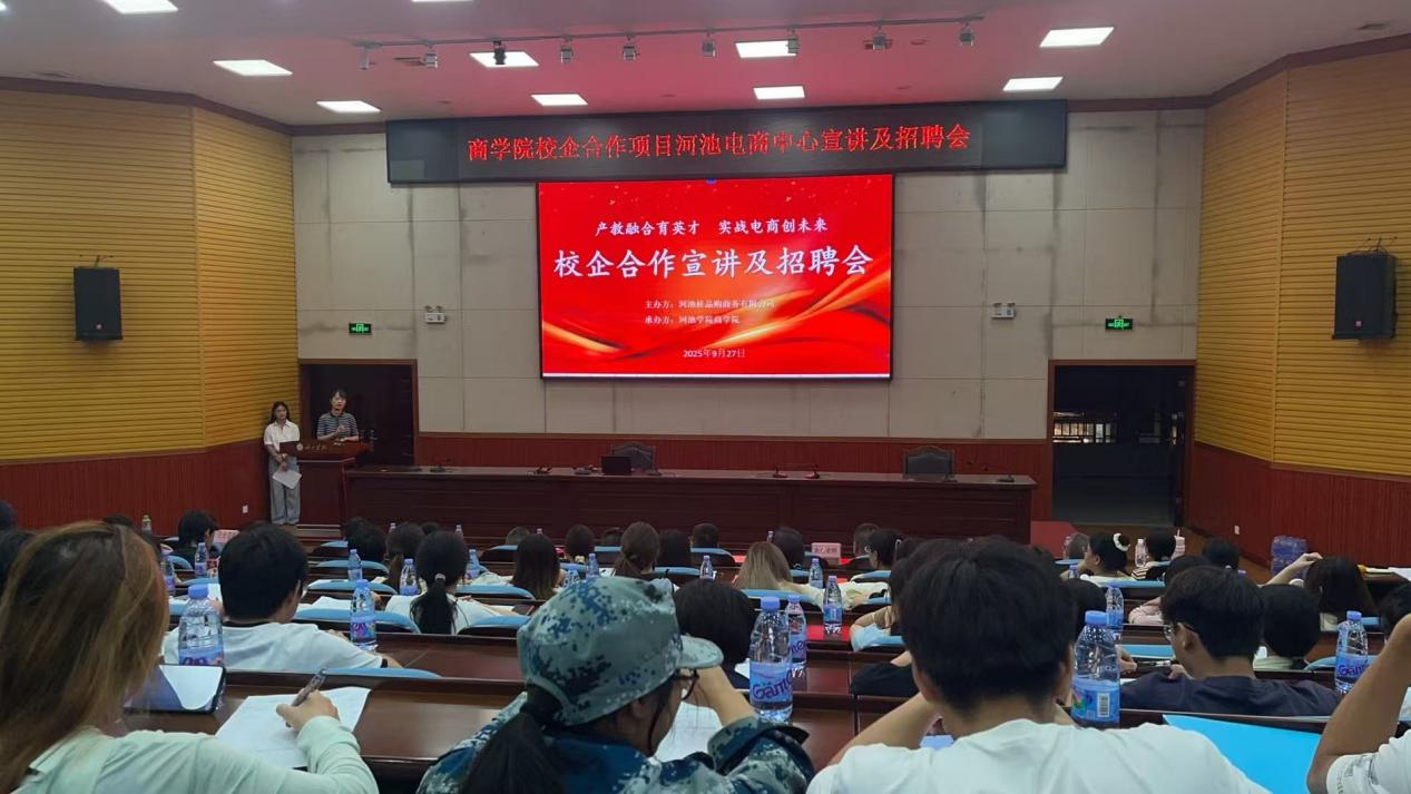 9月27日晚,由永乐高60net与河池桂品购商务有限公司联合主办的“产教融合育英才,实战电商创未来”校企合作招聘会于公司弘毅楼1-205报告厅顺利举行。本次活动以实战为导向,深度融合校企资源,为员工搭建起零距离对接电商行业的优质平台,现场气氛热烈