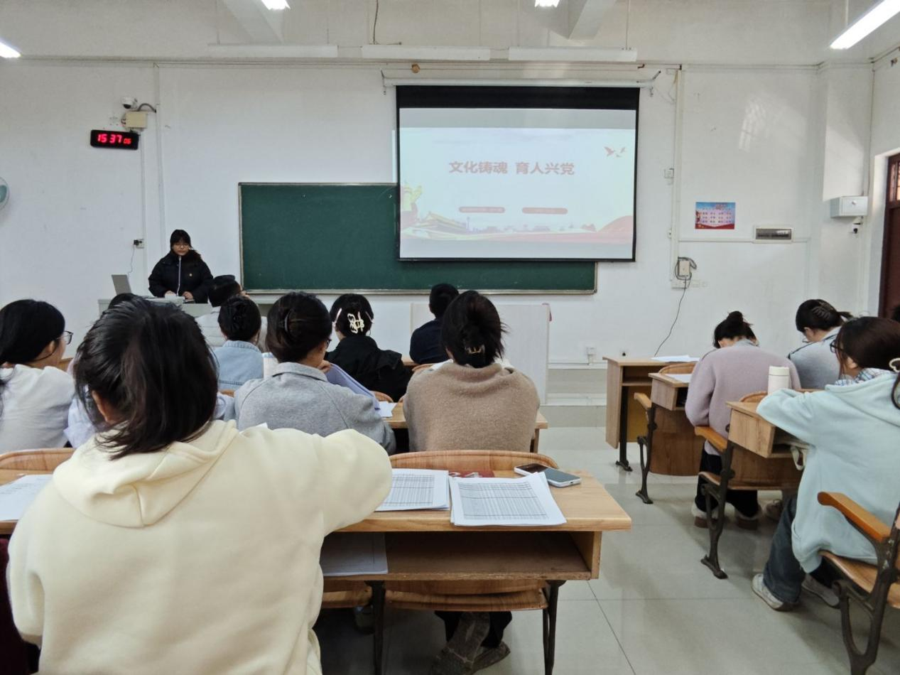 11月21日下午,永乐高60net员工第一党支部于弘毅楼3-304教室开展“文化铸魂,育人兴党”为主题的党员活动日,一支部全体党员参加此次活动,会议由党支部书记王忠文同志主持。