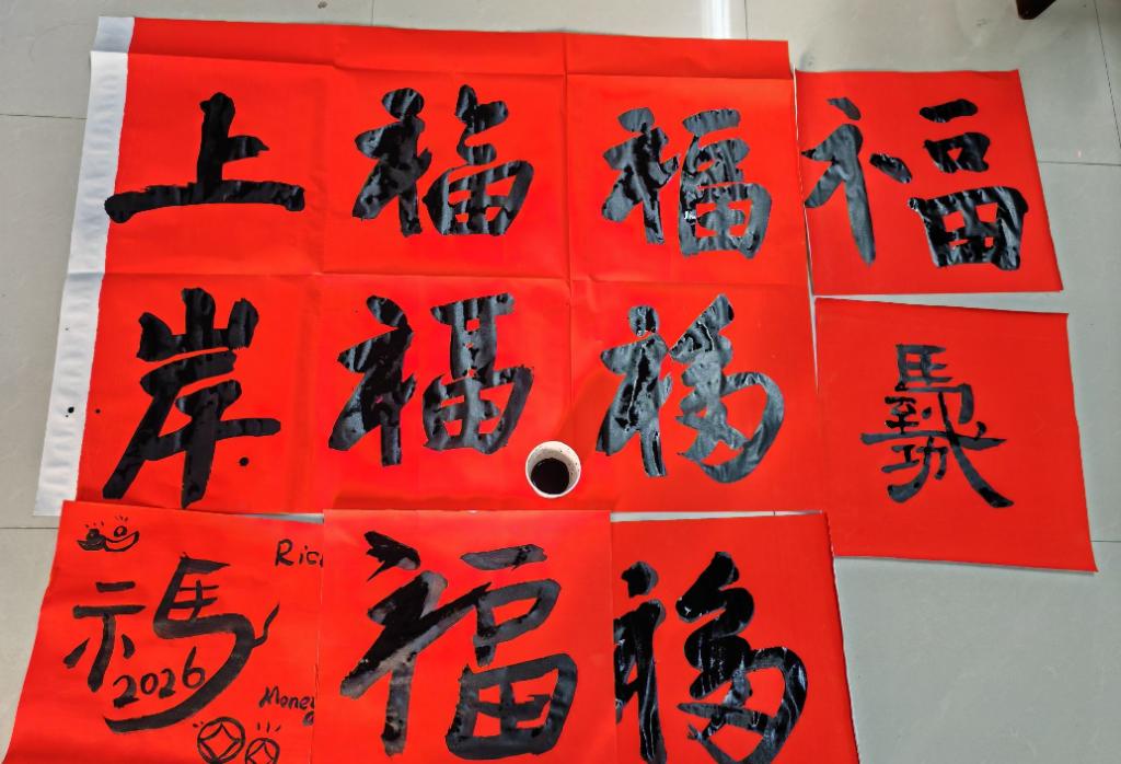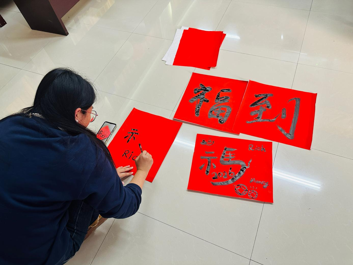 为快速拉近彼此距离,辅导员们依次分享“姓名+公司+近期暖心小事”。在此基础上,沙龙精心设置三大环节,层层递进实现身心舒缓。“心理赋能冥想”环节,辅导员佩戴眼罩跟随引导放松身心,在静默中卸下疲惫;“曼陀罗绘画疗”愈环节,大家自由涂色创作,通过作品分享收获情感共鸣;“书写幸福”环节将活动推向高潮,辅导员们书写“福”字和“上岸”等考研祝福,把对考研学子的期许与关爱融入笔墨,现场暖意融融。