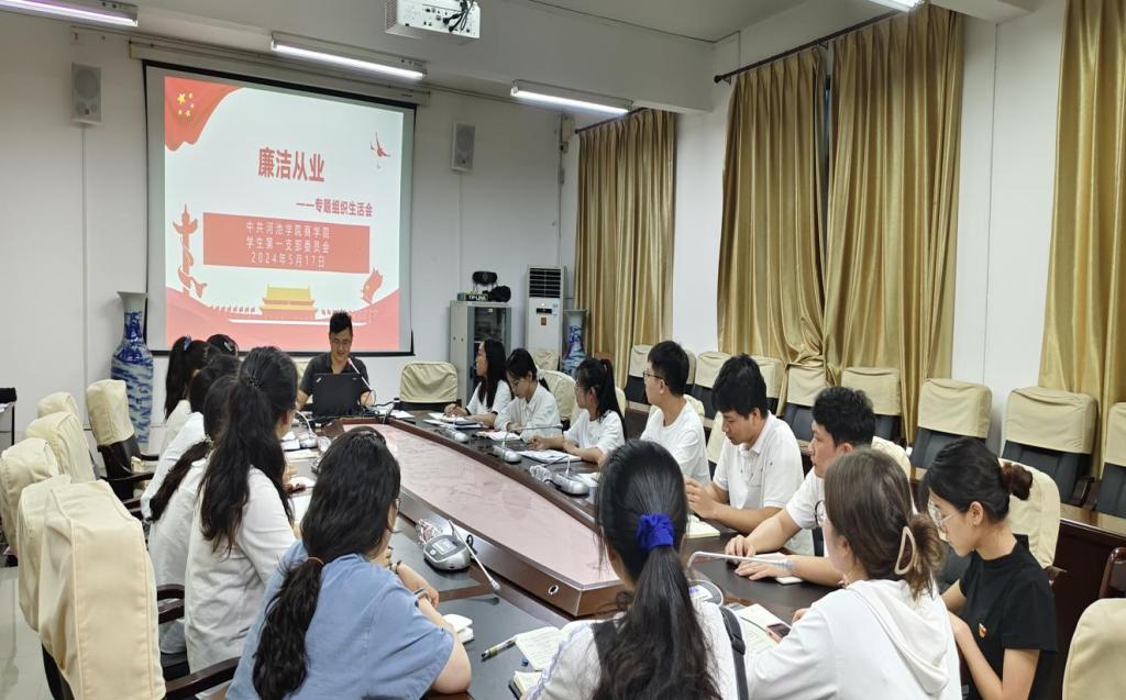 5月17日下午,永乐高60net员工第一党支部于行政楼206教室召开“廉洁从业”主题组织生活会暨党纪学习教育党课,一支部全体党员参加此次活动,会议由支部书记王忠文主持。